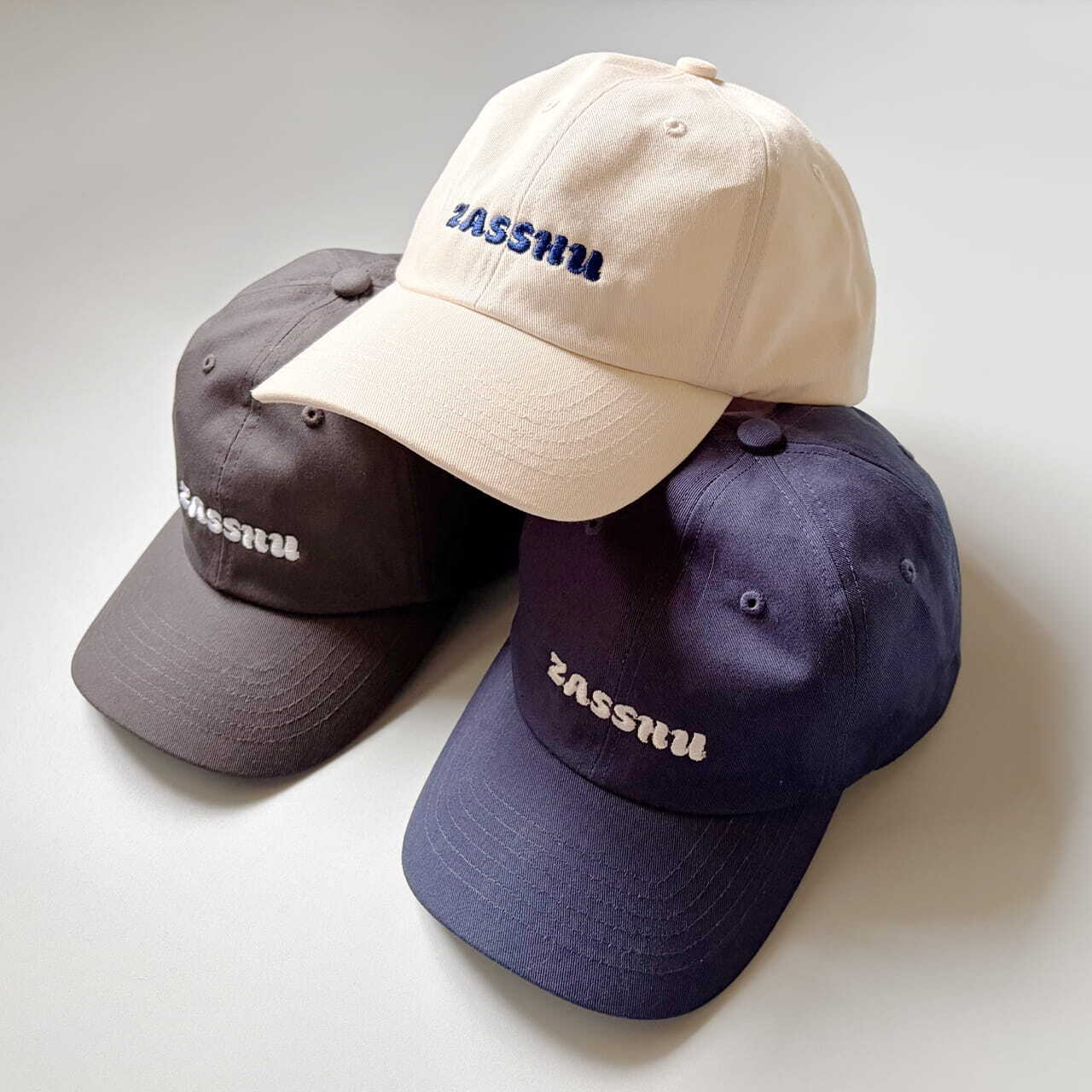 フロントにZASSHUロゴの刺繍が入ったキャップ。